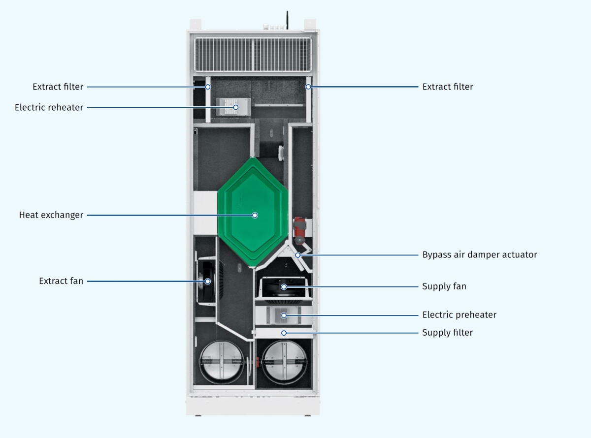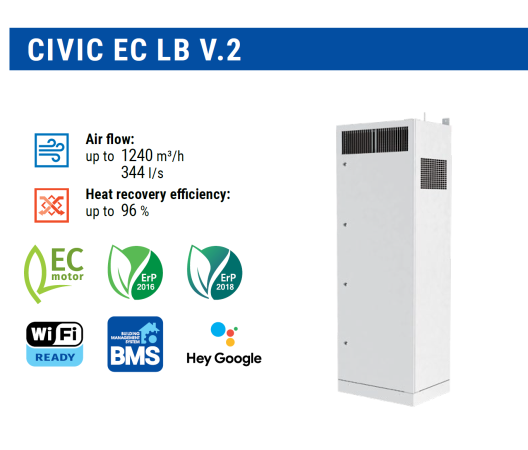 Sistem complet de ventilație cu dublu flux și recuperare de căldură, special proiectat pentru spații publice: școli, grădinițe, birouri și alte instituții.